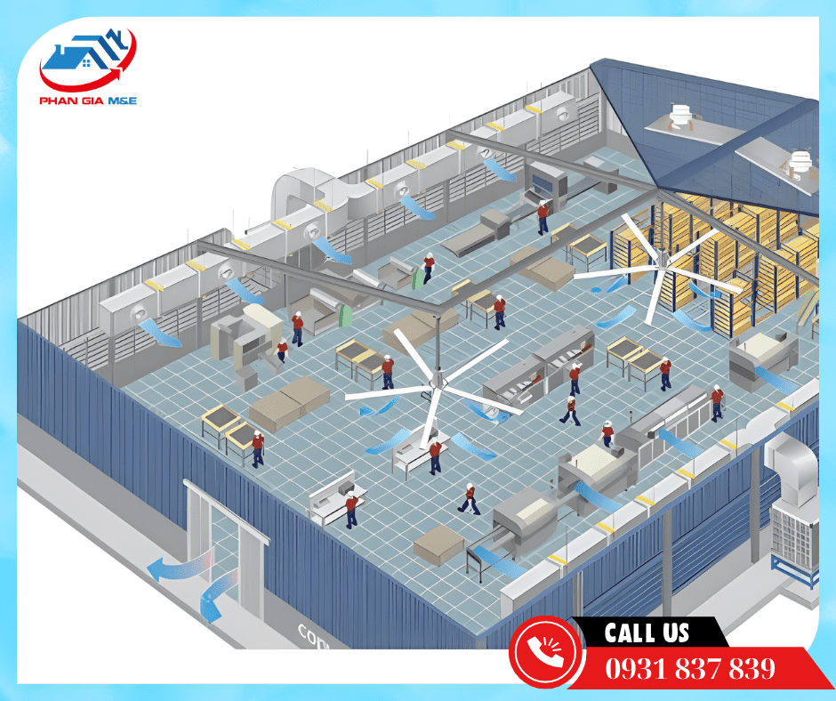 Tìm hiểu hệ thống thông gió công nghiệp cho nhà máy: cấu tạo, nguyên lý, phân loại, tiêu chuẩn thiết kế và giải pháp tối ưu giúp tiết kiệm chi phí, nâng cao hiệu suất.